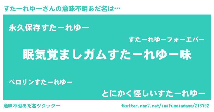 | ヘコむあだ名 | 『すたーれゆー(震え声)』『すたっ子』 |