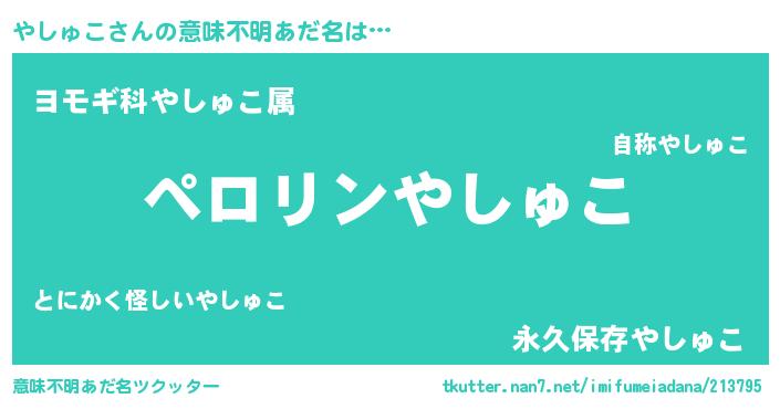 | ヘコむあだ名 | 『やしにゅー』『やしゅこ(苦笑)』 |