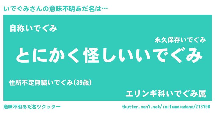 | 男性向けラノベタイトル風あだ名 | 『いでぐみに滅ぼされるだけの簡単なお仕事です』 |