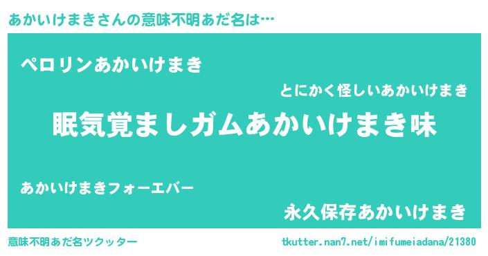 | 男性向けラノベタイトル風あだ名 | 『おまえをオタクにしてやるから、俺をあかいけまきにしてくれ! 』 |