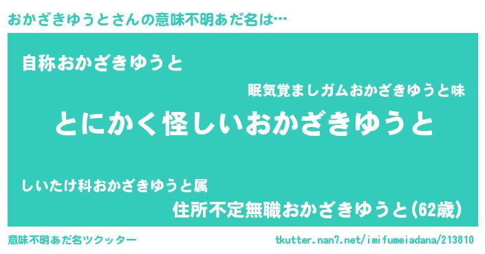 | 男性向けラノベタイトル風あだ名 | 『ダンジョンにおかざきゆうとを求めるのは間違っているだろうか』 |