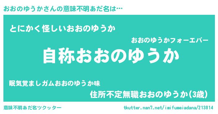 | 男性向けラノベタイトル風あだ名 | 『Re:おおのゆうかから始める異世界生活』 |