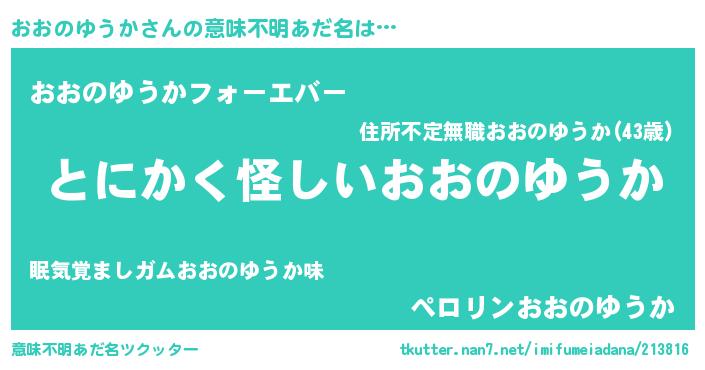 | 女子向けラノベタイトル風あだ名 | 『おおのゆうか様がみてる』 |