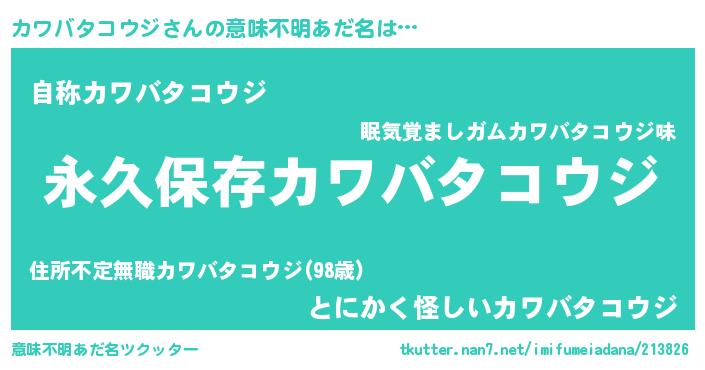 | ヘコむあだ名 | 『カワバタコウジ(笑)』『カワお』 |