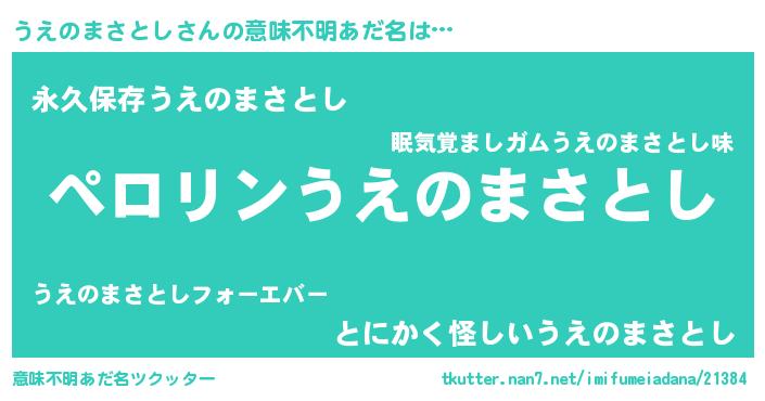 | 伝説のあだ名 | 『伝説のスナイパーうえのまさとし』 |