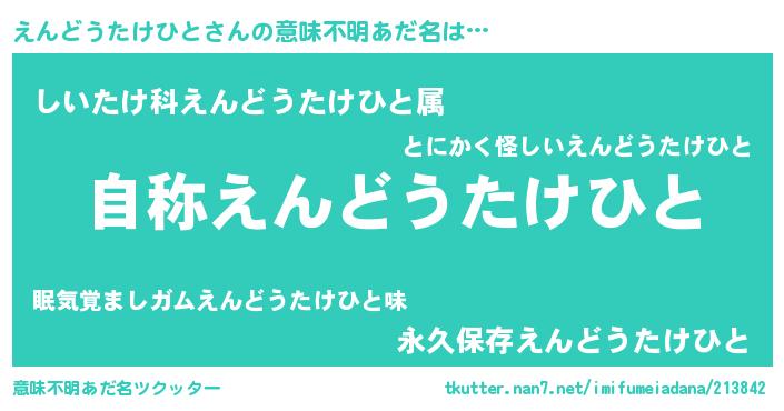 | ヘコむあだ名 | 『えんどうたけひと(遠い目)』『えんっ子』 |