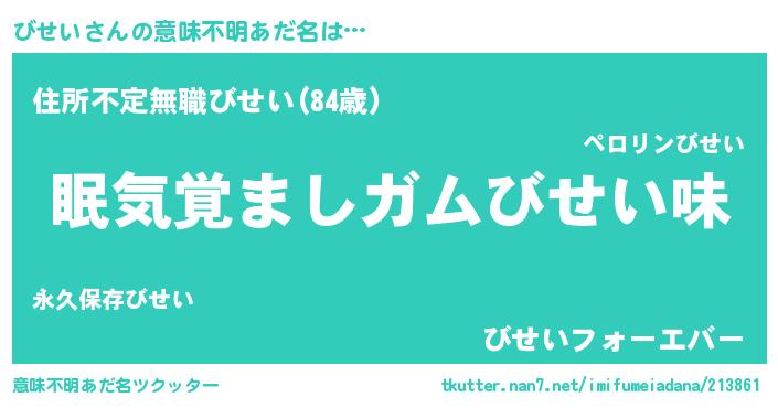 | ヒーロー風カッコイイあだ名 | 『天空の使者びせい』『仮面ビセダー』 |