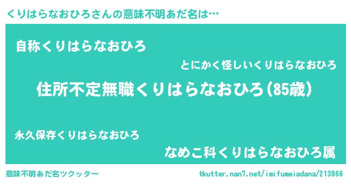 | 胡散臭い通販商品みたいなあだ名 | 『あなたにだけ特別に提供する世界で10本だけ現存している希少なブランデー…その名も「くりはらなおひろ」』 |
