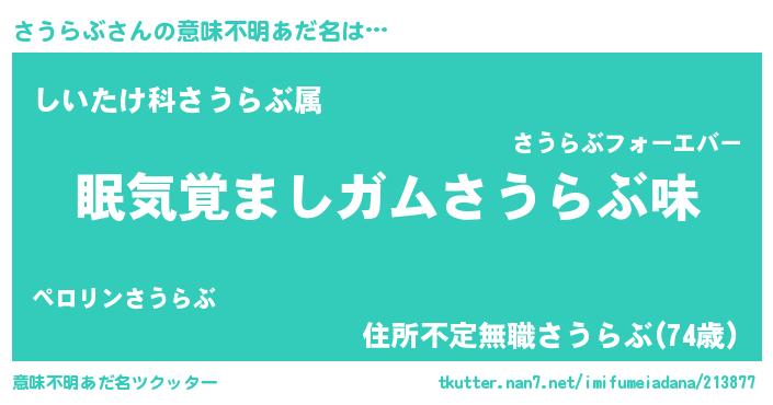 | 女子向けラノベタイトル風あだ名 | 『さうらぶ恋絵巻』『さうらぶ伯爵の花嫁』 |