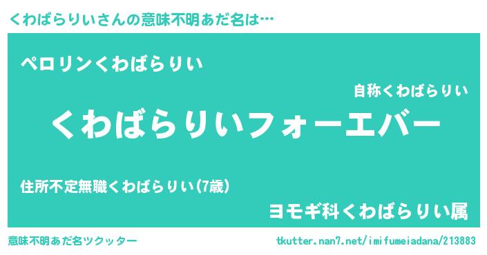 | 欧米人風あだ名 | 『くわばらりいクリステル』 |