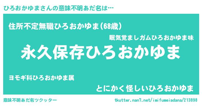 | ヘコむあだ名 | 『ひろおかゆま(爆)』『ひろっぺ』 |