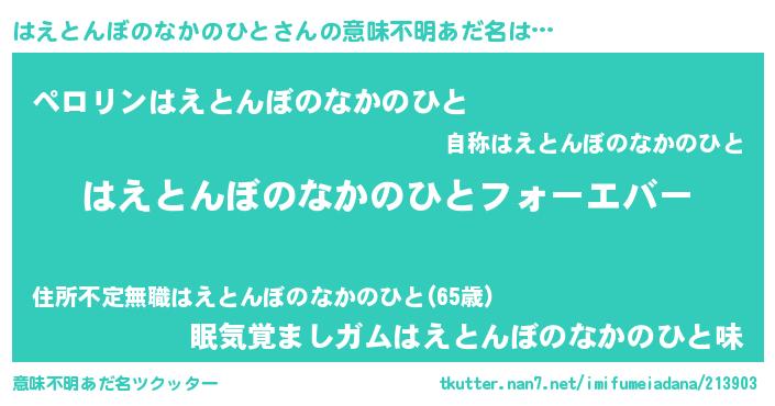 | 伝説のあだ名 | 『最強の忍者はえとんぼのなかのひと』 |