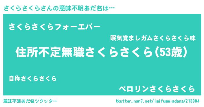 | 男性向けラノベタイトル風あだ名 | 『この素晴らしい世界にさくらさくらを!』 |