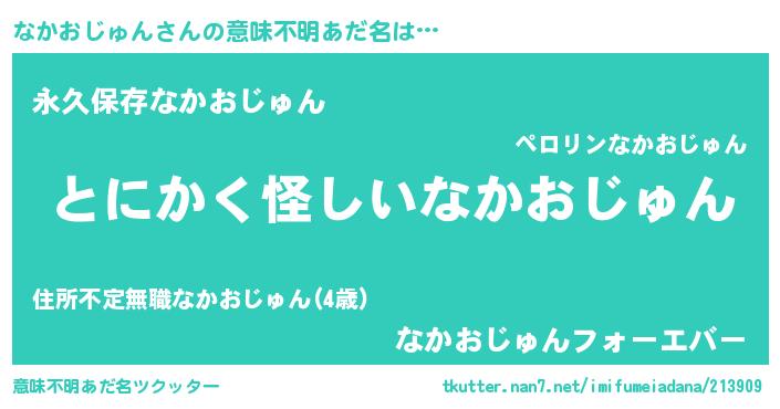 | 男性向けラノベタイトル風あだ名 | 『ダンジョンになかおじゅんを求めるのは間違っているだろうか』 |