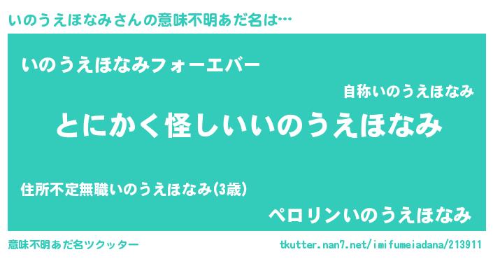 | 男性向けラノベタイトル風あだ名 | 『いのうえほなみの嫁は女の子じゃないと思った?』 |
