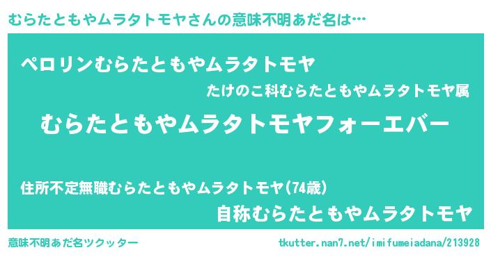| 胡散臭い通販商品みたいなあだ名 | 『世界が平和になる高級そうな壺…その名も「むらたともやムラタトモヤ」』 |