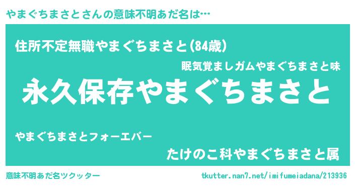 | 胡散臭い通販商品みたいなあだ名 | 『絶対に幸福をもたらす水素水…その名も「やまぐちまさと」』 |