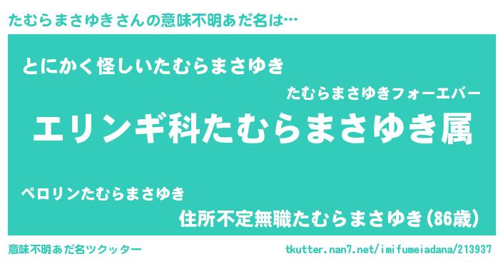 | 肩書あだ名 | 『たむらまさゆき少将』 |