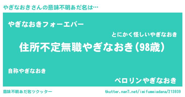 | 欧米人風あだ名 | 『ダレノガレやぎなおき』 |