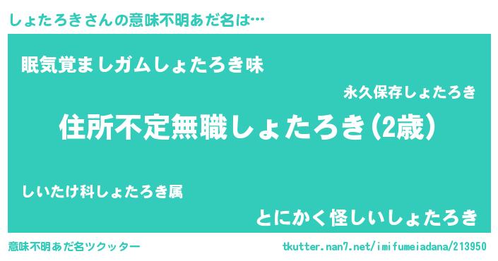 | ヘコむあだ名 | 『しょお』『しょたろき(遠い目)』 |