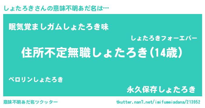 | 欧米人風あだ名 | 『しょたろき・ステッグマイヤー』 |