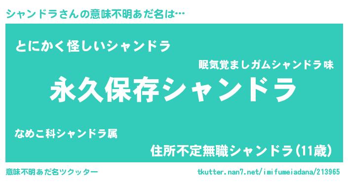 | 男性向けラノベタイトル風あだ名 | 『シャンドラという概念が存在しない退屈な世界 』 |