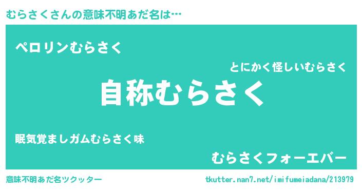 | 男性向けラノベタイトル風あだ名 | 『Re:むらさくから始める異世界生活』 |