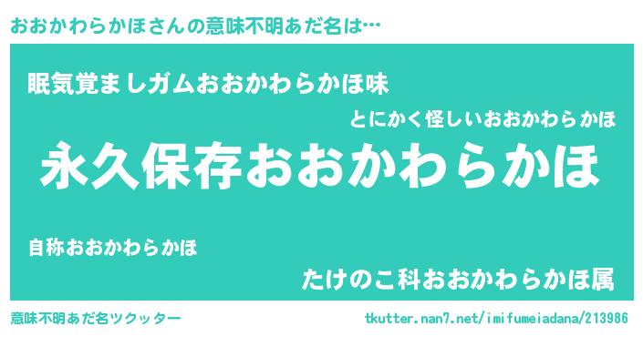 | 欧米人風あだ名 | 『おおかわらかほ・ステッグマイヤー』 |