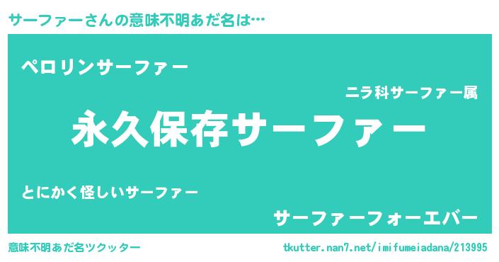 | 男性向けラノベタイトル風あだ名 | 『サーファーという概念が存在しない退屈な世界 』 |