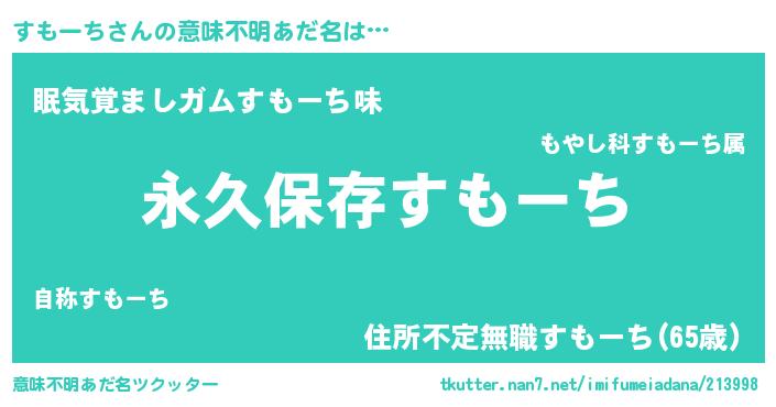 | 胡散臭い通販商品みたいなあだ名 | 『来世でも幸せになれる健康食品…その名も「すもーち」』 |