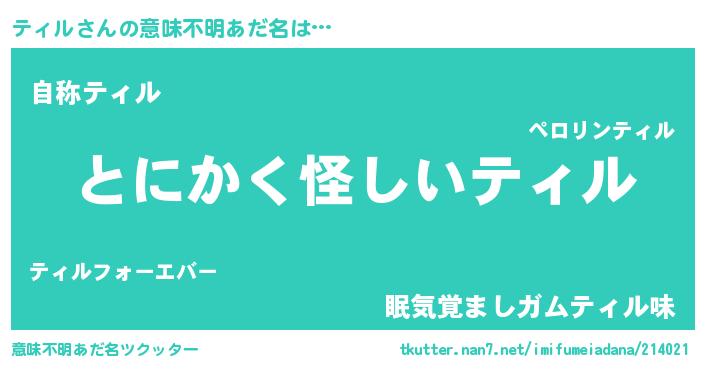 | ヒーロー風カッコイイあだ名 | 『炎刃騎士ティ』『超時空戦士ティル』 |