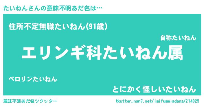 | 男性向けラノベタイトル風あだ名 | 『タイネンスレイヤー』『緋弾のタイネン』 |