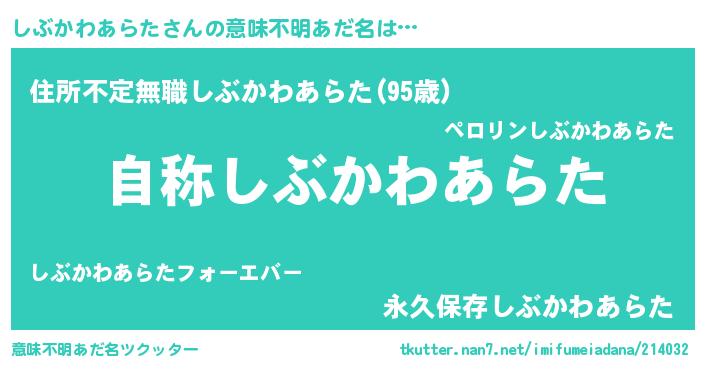 | ヘコむあだ名 | 『しぶかわあらた(遠い目)』『しぶもー』 |