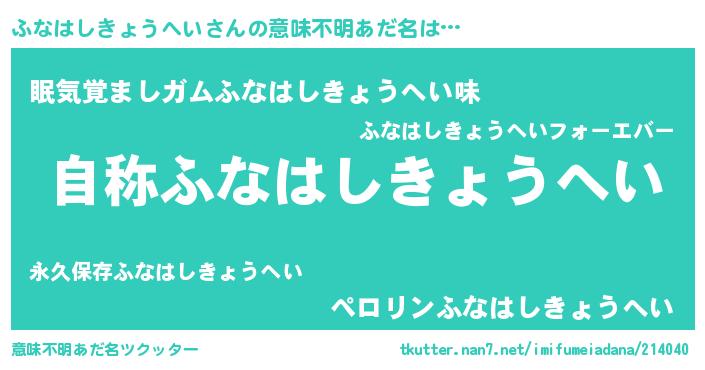 | 肩書あだ名 | 『ふなはしきょうへい閣下』 |