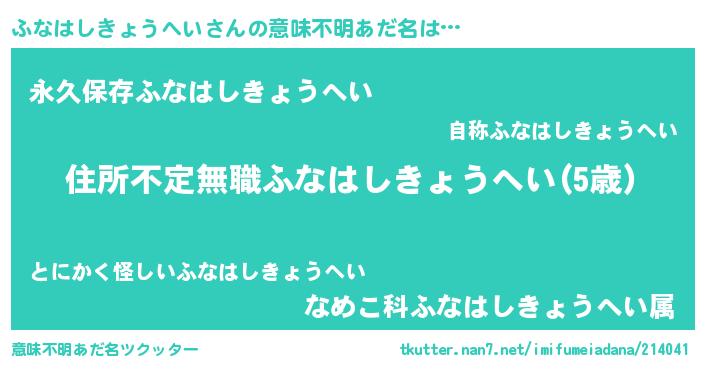 | 男性向けラノベタイトル風あだ名 | 『この素晴らしい世界にふなはしきょうへいを!』 |