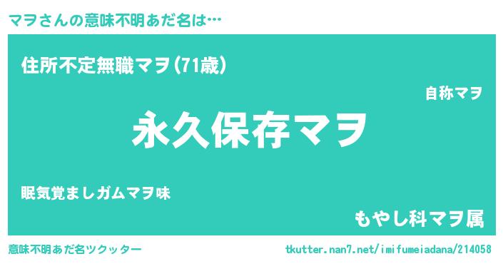 | 男性向けラノベタイトル風あだ名 | 『マヲに滅ぼされるだけの簡単なお仕事です』 |
