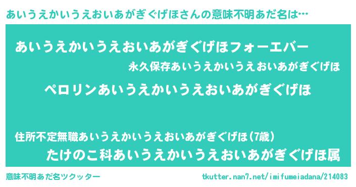 | ヒーロー風カッコイイあだ名 | 『スーパーアイウエカイウエオイアガギグゲホ』 |