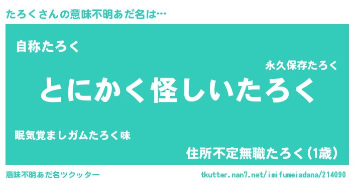 | 男性向けラノベタイトル風あだ名 | 『たろくの嫁は女の子じゃないと思った?』 |