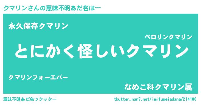 | 胡散臭い通販商品みたいなあだ名 | 『信頼と実績のネックレス…その名も「クマリン」』 |