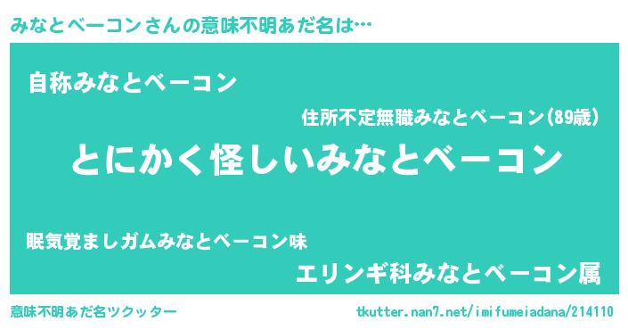 | 胡散臭い通販商品みたいなあだ名 | 『信頼と実績のサプリメント…その名も「みなとベーコン」』 |