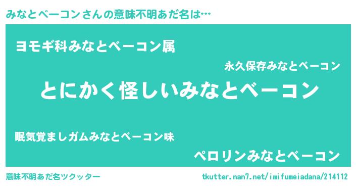 | 男性向けラノベタイトル風あだ名 | 『うちのみなとベーコンが世界を掌握している!』 |