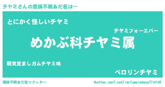 | ヒーロー風カッコイイあだ名 | 『暗黒騎士チヤ』『スーパーチヤミ』 |