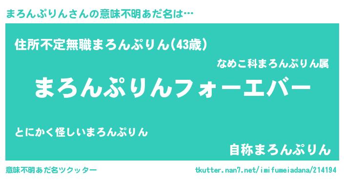| 欧米人風あだ名 | 『まろんぷりんクリステル』 |