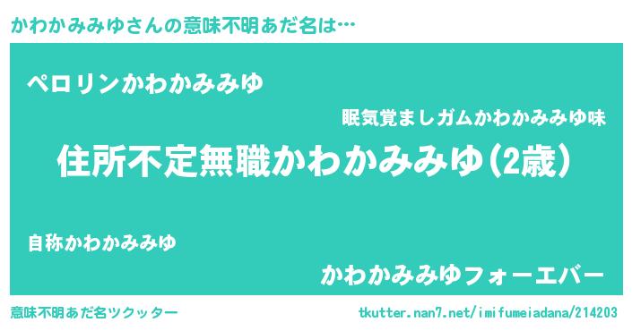 | 男性向けラノベタイトル風あだ名 | 『この素晴らしい世界にかわかみみゆを!』 |