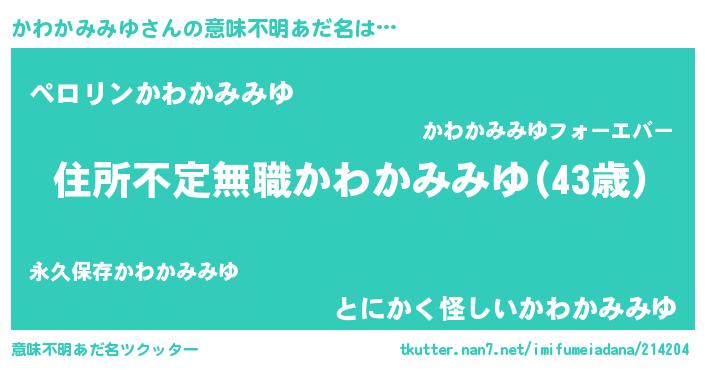 | 男性向けラノベタイトル風あだ名 | 『冴えないかわかみみゆの育てかた』 |