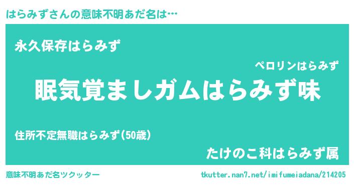 | 欧米人風あだ名 | 『ダニエルはらみず』『マイケルはらみず』 |