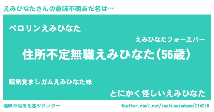 | 欧米人風あだ名 | 『えみひなた・ステッグマイヤー』 |