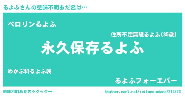 | ヘコむあだ名 | 『るよふ(震え声)』『るよにー』 |