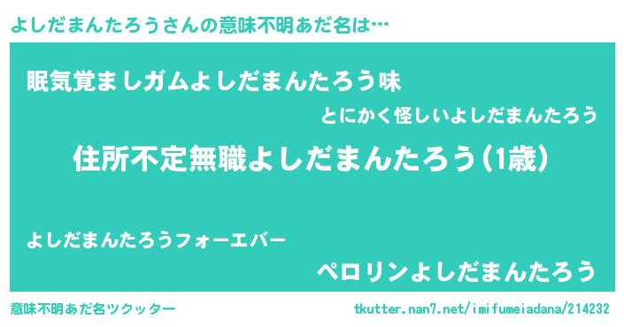| 欧米人風あだ名 | 『ダレノガレよしだまんたろう』 |