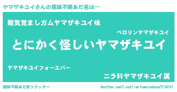| ポケモン風あだ名 | 『ヒヤマザキユイ』『ヤックウザ』 |